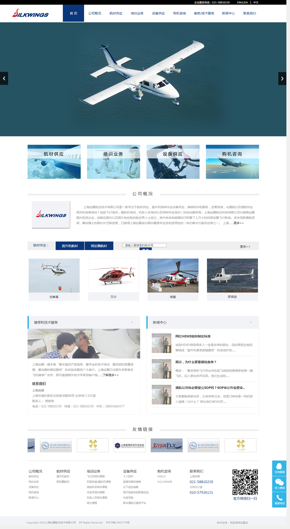 上海絲翼航空技術(shù)有限公司是一家專注于航材供應(yīng),直升機(jī)特種作業(yè)設(shè)備供應(yīng),維修軟件和服務(wù),運營咨詢,與通航以及警航作業(yè)相關(guān)的各類培訓(xùn)(包括飛行培訓(xùn),模擬機(jī)培訓(xùn),機(jī)務(wù)人員培訓(xùn)以及特種作業(yè)培訓(xùn))的綜合服務(wù)商。